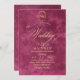Elegant stylish fuchsia and gold modern wedding invitation with an elegant handwritten font with curls and a monogram of the bride and groom. Classy and elegant, simple and modern invitation.