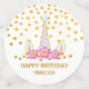 Beautiful chic magic Birthday unicorn table confetti on white background. Unicorn is decorated with pink flowers and gold confetti. Ideal for birthdays, and any other magical celebration. All texts can be personalised for girls or boys.