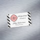 CHIC MAGNETIC BUSINESS CARD_BLACK/WHITE STRIPES WITH WHITE CENTER. 004 PINK/BLACK TAG WITH BLACK 3-INITIALS MONOGRAM. BLACK INFORMATION TEXT. SEE MATCHING ITEMS IN COLLECTIONS.