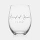 Chic Maid of Honour Customisable Black Script Stemless Wine Glass