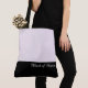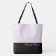 This lovely fashion forward tote bag shows the word "Maid of Honour" in white text colour over black with the upper tote bag in custom Soft Blush Orchid. Has plenty of room for personalised text. Graphics and text are on both sides of this tote bag. Black handle. Customise further or buy as shown.