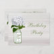 Chic Mason Jar & White Hydrangea Birthday Party Invitation