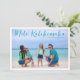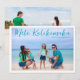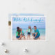 Chic customisable beach family photo Christmas card with your favourite tropical photo in the sun. Add a full photograph of your favourite memory from your island vacation to the coast on the front and one on the back. A beautiful coastal holiday card with a clean, modern design and pretty blue script over the picture.