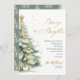Elegant Modern Gold Calligraphy Merry and Bright Script Watercolor Christmas Tree Non Photo Christmas Cards. This festive Holiday cards features a watercolor christmas tree with decoration gold balls and confetti and a „Merry and Bright” greeting text which is written in a pretty hand lettering font in gold and white. On the reverse christmas tree pattern on dusty green background. This festive Custom Personalised Christmas Cards are a great way to remind loved ones that you're thinking of them this Winter Holiday Season.