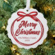 Chic Merry Christmas Script Red Ribbon Bow Custom Tree Decoration Card