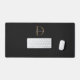 Chic Midnight Black Mossy Gold Script Monogram Desk Mat