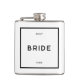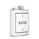 Chic and minimal French, Parisian inspired, monochrome black and white personalised bride hip flask. Perfect for so many occasions... a thoughtful gift for a bride or bride-to-be on her bachelorette party, bridal shower party, wedding party, engagement or honeymoon. Customise with bride's name and wedding destination in a chic minimal sans serif font. Designed to match our Chic Minimal French Black & White Wedding Collection.
