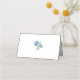 Minimal, chic and simple white folded card.. This wedding table place card, features a modern script font, a line for handwriting guest names, a floral hydrangea illustration at the back of the card as well as a optional area for extra text on the inside of the card.