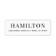 These chic return address labels feature a modern design with a black and white colour palette. The last name is written in large capital letters across the top, with the address written all on one line below.