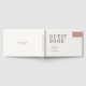For the modern minimalist. This chic and stylish wedding guest book features a contemporary set of fonts in a blackish font, couple names, place and date, against a lovely soft ivory background. The design also includes a dusty pink prompt area for guests on the side. Variation of this design is available in the same collection.