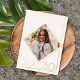 Unique and trendy yellow gold foil congratulations graduate announcement and celebration party invitation card, framed with a stylish yellow gold foil frame on a crisp white background. With room to customise or personalise with a photo, the name of the graduate, class graduation year, high school, future college or university name, and celebration party event information. Let the family, friends and neighbours know there is a happy graduate ready to conquer the world, and invite everybody to come celebrate the happy event with you!