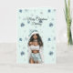 Chic Mint Blue Snowflakes Black Hair Female Card