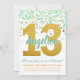 Chic Mint Gold Glitter Confetti Girl 13th Birthday Invitation
