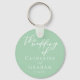 This soft mint green wedding keychain favour features chic white script for a sweet spring outdoor ceremony. Simple typography on a tranquil solid pastel green newlywed keepsake for a garden venue.
