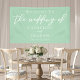 This soft mint green wedding banner features chic white typography for a sweet spring outdoor ceremony. Simple and elegant script on tranquil solid pastel green decor for a garden venue.