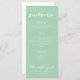 This soft mint green wedding dinner menu features chic white typography for a sweet spring outdoor ceremony. Simple and elegant script on tranquil solid pastel green menus for a garden reception.