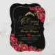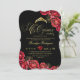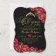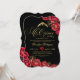 Modern stylish Quinceanera black red and gold 15th birthday invitation with beautiful rose and gold dust on with a gold ink pour effect (the gold is a digital effect, not real foil!) and modern calligraphy. Classy Quinceanera and elegant script and chic flowers print birthday invitation.
