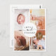 This chic timeless photo thank you card is ideal for anyone who wants to thank guests at their baby shower for the gifts, love, and support they have received and to introduce their new member of the family. The modern, elegant design has a minimalist style and features four customisable photos placed in the collage and whimsical elegant typography for the header in a circle: love and thanks. On the reverse, there is your customisable thank-you message with your names and your new-born's info. Use the "customise" button to replace photos and edit text.