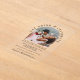 Chic modern clear acrylic elopement or private wedding announcement and reception invitation featuring your photo in an arch frame and "Eat Drink & Celebrate" in elegant serif typography. Personalise your invitation details and add your names in a signature-like script.