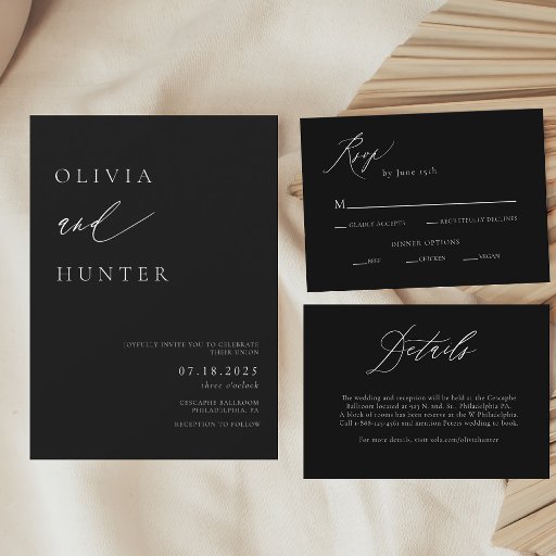 Chic Modern Black & White Wedding Invitation