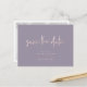 Chic and modern signature script in blush pink Save the Date postcards, DIY background in dusty purple. Copyright © 2016-2019 Bombino Designs.