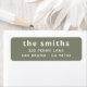 Elevate your mail with this chic, modern return address label. The family name is printed in bold sans serif lowercase letters, with the address neatly positioned below in smaller capital letters. The label’s background is a sage green, but it can be customised to any colour to suit your personal style. Perfect for adding a clean, minimalist touch to your mail, this label is both practical and stylish, making it ideal for any occasion. View the collection linked on this page for matching items or visit our store for more return address labels.