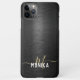 Elegant , Chic and modern Brushed Metallic Black Gold Monogram Script design features brushed metallic black texture, accentuated by a bold gold monogram and a chic white girly script name, making it a stylish and personalised accessory. This will be perfect as personised gift.