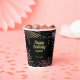 Modern colourful fireworks black birthday paper cup with a fireworks background.