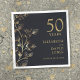 These elegant, black and gold floral 50th wedding anniversary napkins can be personalised with your information in modern gold typography. Designed by Thisisnotme©