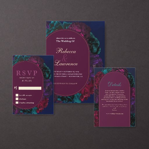 Chic jewel tones burgundy navy floral weddingDesigned by Zeinab Taha