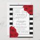 These chic and very stylish surprise Birthday party invitations feature an elegant faux silver foil frame on trendy black and white stripes with red roses and matching modern typography that is perfect for celebrations of any age. Easily personalise the design with your own wording and find matching party items at www.zazzle.com/invitation_republic.