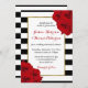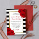 The chic modern luxe wedding collection features a classic black and white stripe background accentuated with beautiful ruby red roses and a faux gold foil frame. These rehearsal dinner invitations are easy to personalise with your own wording and matching wedding items can be found in the collection.