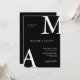 Chic Modern Monogram Initial Black White Wedding Invitation