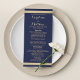Elegant stylish modern navy blue and faux gold luxury Wedding Program invitation.This stylish chic navy blue modern luxury wedding program invitations is perfect for any classy and sophisticated glam girl. This design is perfect for the trendy and stylish party event. Customise this design with your own message and personalised information. All designs are printed.