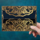 This chic and bohemian-inspired design is perfect for a stylish and trendy woman. It features a faux printed gold foil hand-drawn mandala on top of a simple and modern dark navy to darker blue ombre gradient background. It's pretty, boho, pretty, elegant, and luxurious.