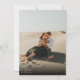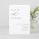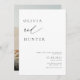 This chic modern black and white wedding invitation is so fresh and new for 2024 and 2025 weddings! It has a classic black and white colour theme with calligraphy and serif text. The back has a template for your favourite engagement session photo, a black fade on the bottom and the matching name and wedding date in the corner.
