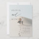 This chic modern black and white wedding invitation is so fresh and new for 2024 and 2025 weddings! It has a classic black and white colour theme with calligraphy and serif text. The back has a template for your favourite engagement session photo, a black fade on the bottom and the matching name and wedding date in the corner.
