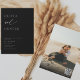 This chic modern black and white wedding invitation is so fresh and new for 2024 and 2025 weddings! It has a classic black and white colour theme with calligraphy and serif text. The back has a template for your favourite engagement session photo, a black fade on the bottom and the matching name and wedding date in the corner.