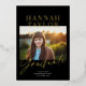 This gorgeous graduation announcement design features modern typography, a horizontal photo, and chic black background - plus your graduate's name and "graduate" in real pressed foil! Class year, school attended, and future school is flat printed in white. This is a simple yet elegant design. You can customise this design even further by adding a photo or additional text to the backer. Foil is available in gold, silver, or rose gold and absolutely shines! Select real foil graduation announcements to add that wow factor!