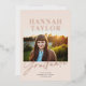 This gorgeous graduation announcement design features modern typography, a horizontal photo, and subtle muted pink background - plus your graduate's name and "graduate" in real pressed foil! Class year, school attended, and future school is flat printed in dark grey. This is a simple yet elegant design. You can customise this design even further by adding a photo or additional text to the backer. Foil is available in gold, silver, or rose gold and absolutely shines! Select real foil graduation announcements to add that wow factor!