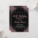 Chic Elegant Modern Sparkle Rose Gold Glitter Black 60th Birthday Invitation. This Girly Sixtieth Adult Birhday party invitation (for her, any age) feature an elegant hand lettered calligraphy script and rose gold diamond glitter frame on black background. Ideal for a feminine adult milestone birthday celebration, this invitation perfectly captures the essence of a modern rose gold and blush pink glitter sparkle girly birthday party.