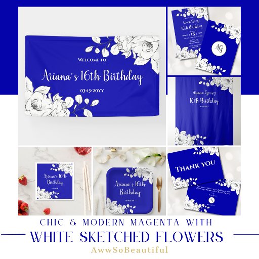 Chic Modern Royal Blue with Sketched White FlowerDesigned by Amazing Beautiful Creative Designs