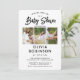 Invite family and friends to a simply stylish baby shower celebration with chic custom photo collage invitations. The pictures and all wording on this template are simple to personalise. The gender neutral design is suitable for either a new baby boy or girl, and can also be customised for a couples co-ed baby shower. (IMAGE PLACEMENT TIP: An easy way to position a photo exactly how you want is to crop it before uploading to the Zazzle website.) The modern minimalist black and white design features bold brushed script calligraphy, classic vintage art deco typography, and four pictures of your choice, such as mum-to-be pregnancy photos, new parents maternity pics, or images of an ultrasound, baby shoes or onesy. On back is space for a personal message and/or registry information. Congratulations to the mother to be!