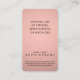 Make a memorable first impression with a unique pink and black business card with faux rose gold foil background. All text is simple to customise. An optional appointment reminder on back is easily deleted if not needed. The plain modern minimalist stripe design with black script typography name presents your contact info with chic elegant style. Suitable for freelance entrepreneurs, small businesses, or corporate office professionals, this plain & minimal card is trendy yet timeless. It is presented here as a makeup artist, hair stylist, or salon business card, but it can be easily personalised for any profession.