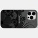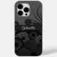 Hibiscus: Black © Sunny Mars Designs. Gorgeous, trendy, modern, chic, girly, stylish elegant Goth floral custom printed Case-Mate cell phone hard shell covers with pretty Gothic black and dark grey or grey swirly tropical hibiscus flower design. Personalise it by adding your own name or other text on it.