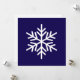 This colourful, modern festive seasonal design features a large alpine snowflake against a background of navy blue.