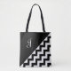 Chic Monogram Black White Geometric Zigzag Pattern Tote Bag