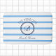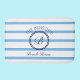 Chic Monogram Blue Stripes Family Name Beach House Bath Mat