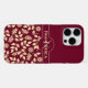 Chic Monogram Custom Name Leaves Daisies Burgundy iPhone Case