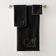 Chic Monogram Gold Script Name Black Bath Towel Set
